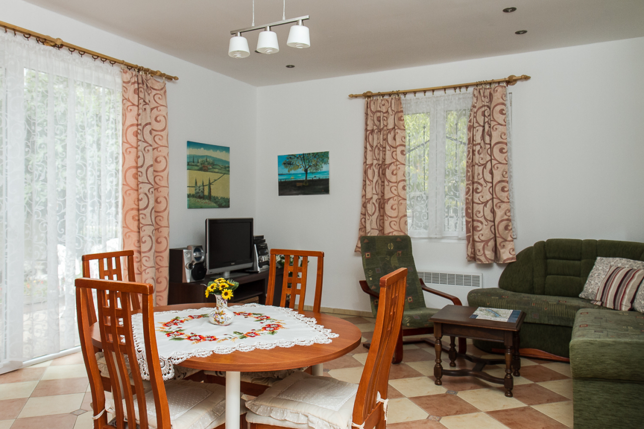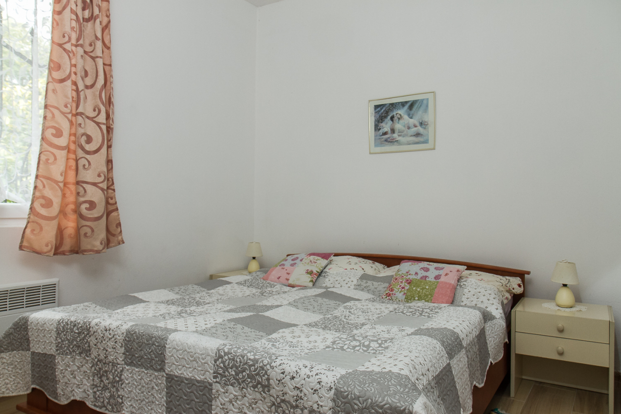 Szépen berendezett, klimatizált ikernyaraló fele ( hátsó lakás ) 4 főre wifivel, mosógéppel strandközeli helyen. Közös használatú kert, kerti bútor, kerti grill, hintaágy, napozóágyak, kerti pavilon, TV, autóbeálló, klíma. Az első lakás is foglalható BBO-034 kódszám alatt. Telek mögött fut a vasút.