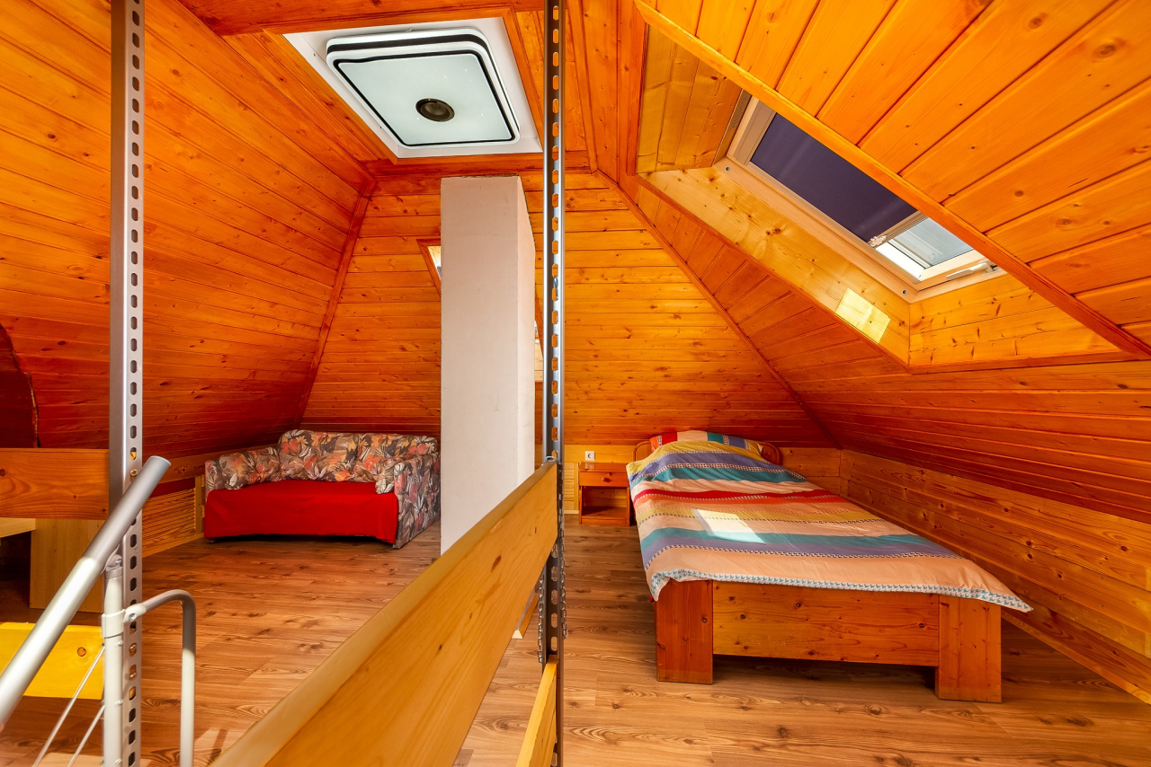 Emelet: egy ágy a galérián
