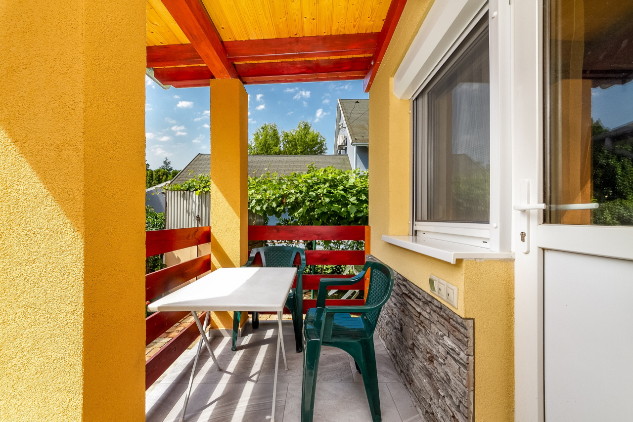 Önálló, klimatizált, felújított nyaraló 4 főre központi, strandközeli helyen wifivel, mosógéppel és mosogatógéppel. Kert, kerti bútor, kerti grill, autóbeálló, TV, klíma ( felárért ).